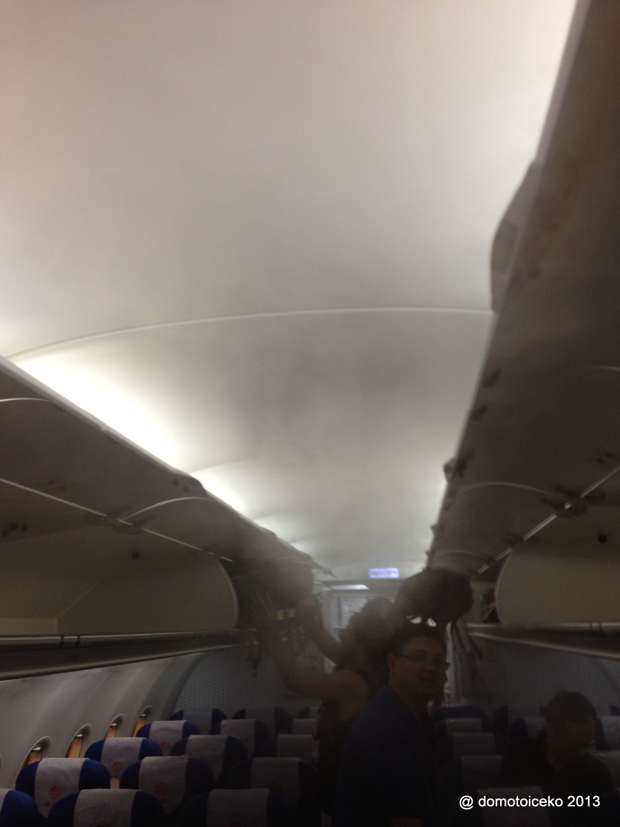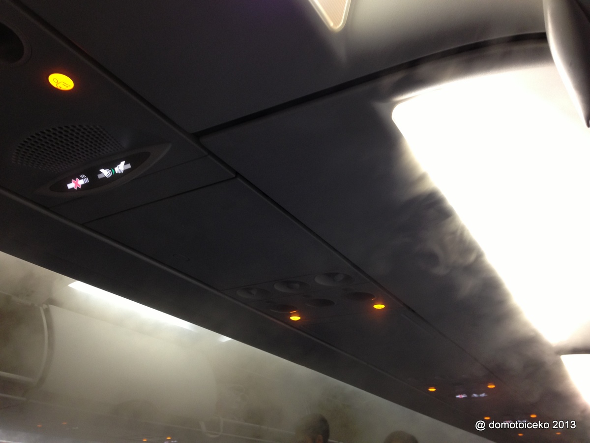 據說因為地面熱,飛機要BALANCE番內外的溫度所以在機內噴水氣,但件事…噴到咁…好似去咗仙境咁…好奇妙…哈哈哈。