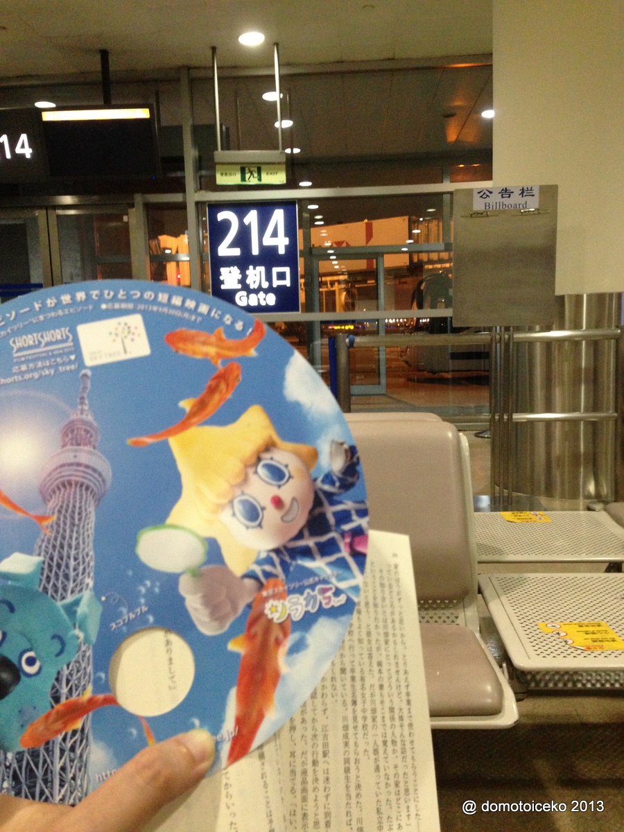 如果我無記錯呢個三叔的叉電站應該係上海個機場?﹗好開心喎可以叉電﹗ANY肥,從東京到上海時係夜晚七點零,都成35度,熱囉咪﹗但個機場無冷氣,無風扇…完全不通風呀﹗好在我朝早喺SKYTREE度拎咗把扇,可以怒撥嚟降溫咋﹗